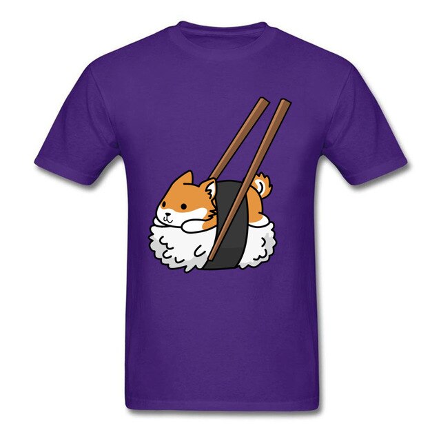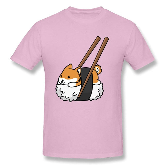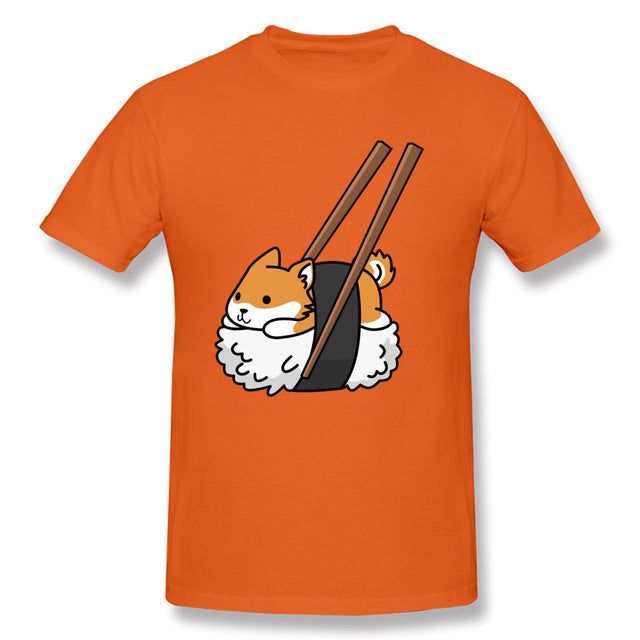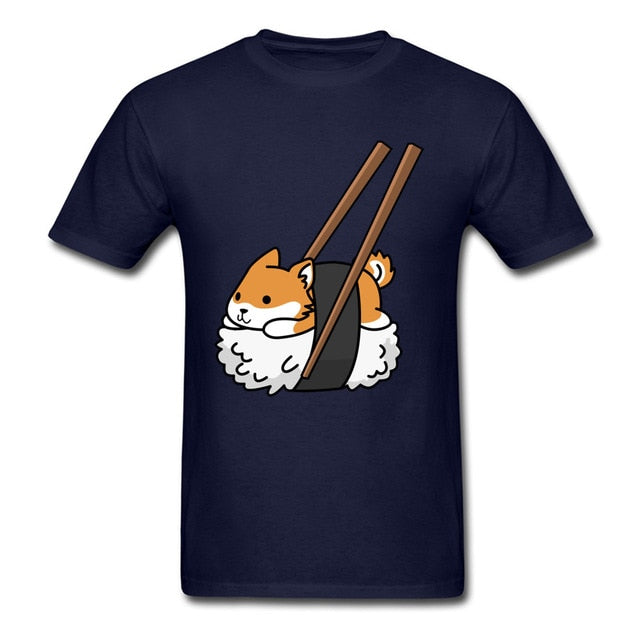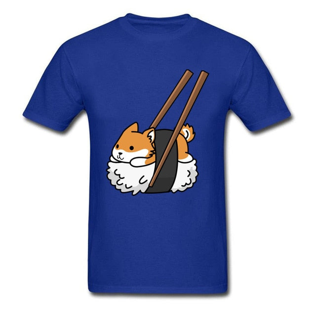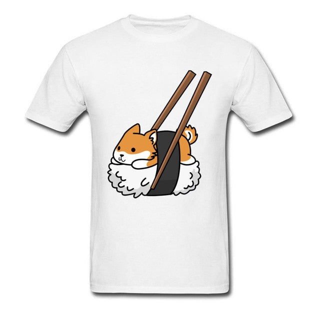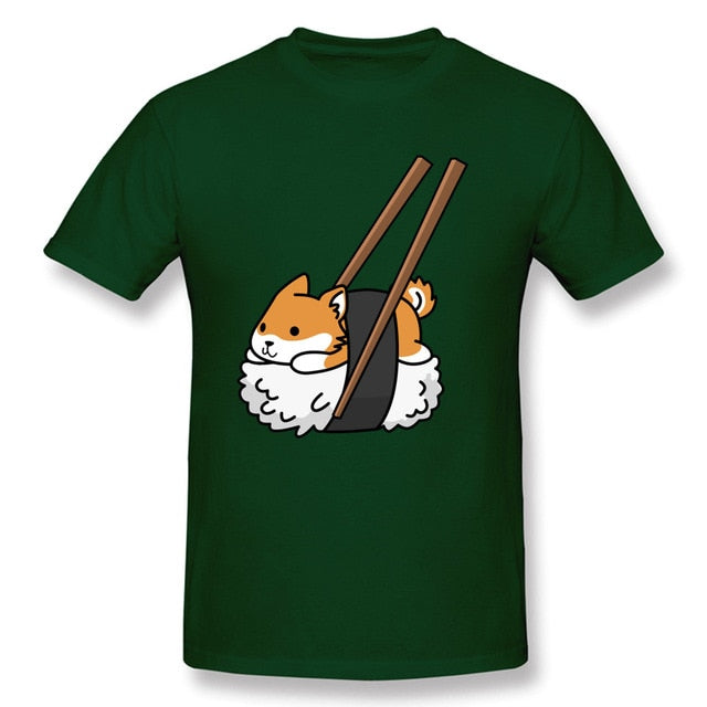 Wear this HappyDog T-shirt in style. It's got an adorable Shiba Inu rolled up in a sushi roll. How can you not like it?