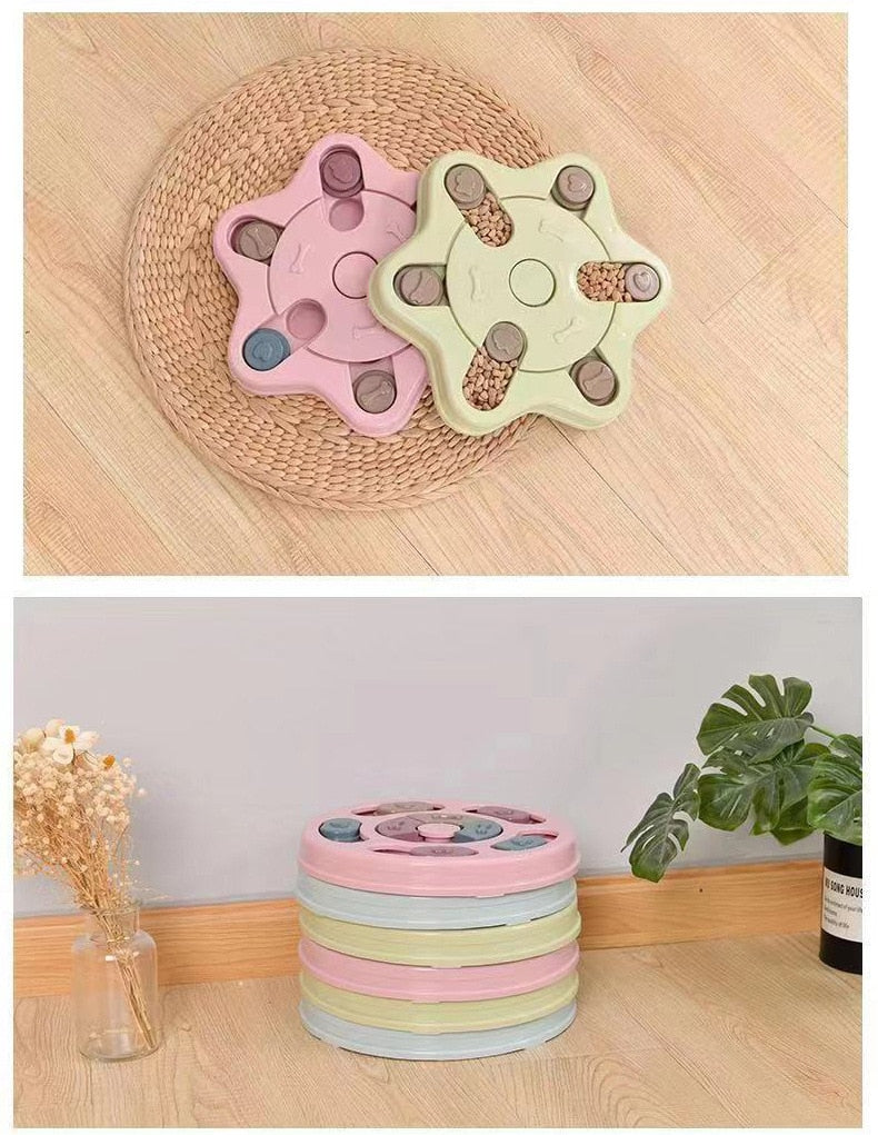 The Smart Dog IQ Puzzle Feeder is a fun way to feed your dog. It slows down their eating and also stimulates their brain, while teaching good patience. Eating will turn into a very nourishing and positive learning experience for your pal.